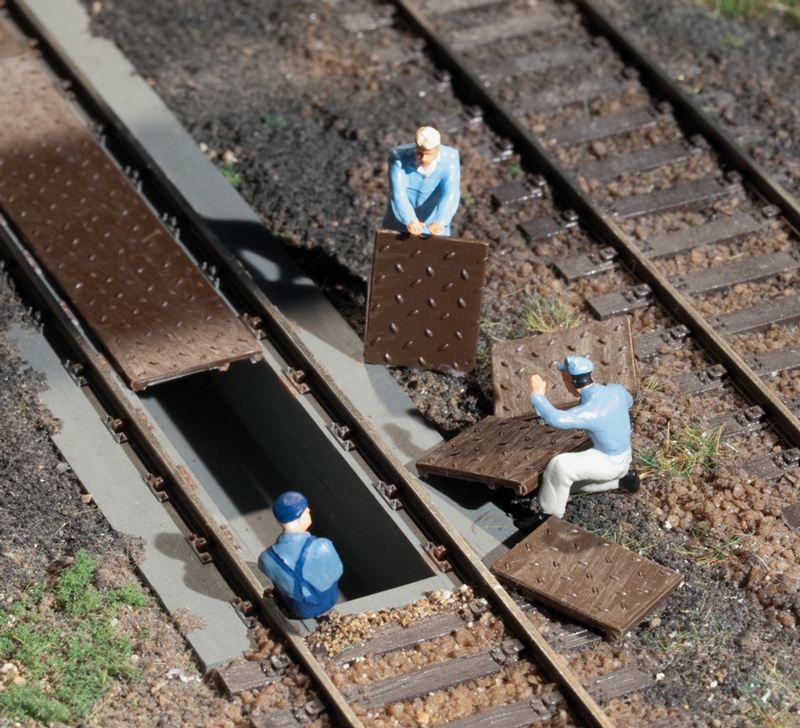 Hier werden Riffelblech und Holz imitiert. Damit können Sie vorbildgetreu Gleisübergänge und Einlagen zwischen den Gleisen, z. B. auf Brücken, gestalten.