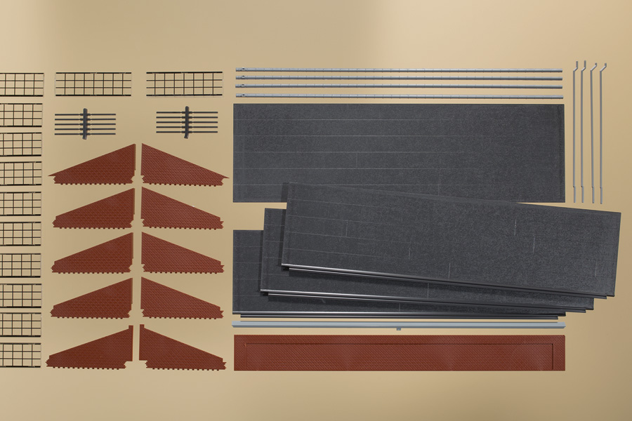 Für max. 4 Segmente. Durch den zusätzlichen Zwischengiebel mit jedem weiteren Bausatz um max. 3 Segmente erweiterbar.