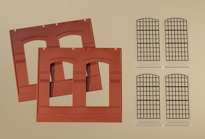 2 Wände mit Fensteröffnungen E und Zahnfries.