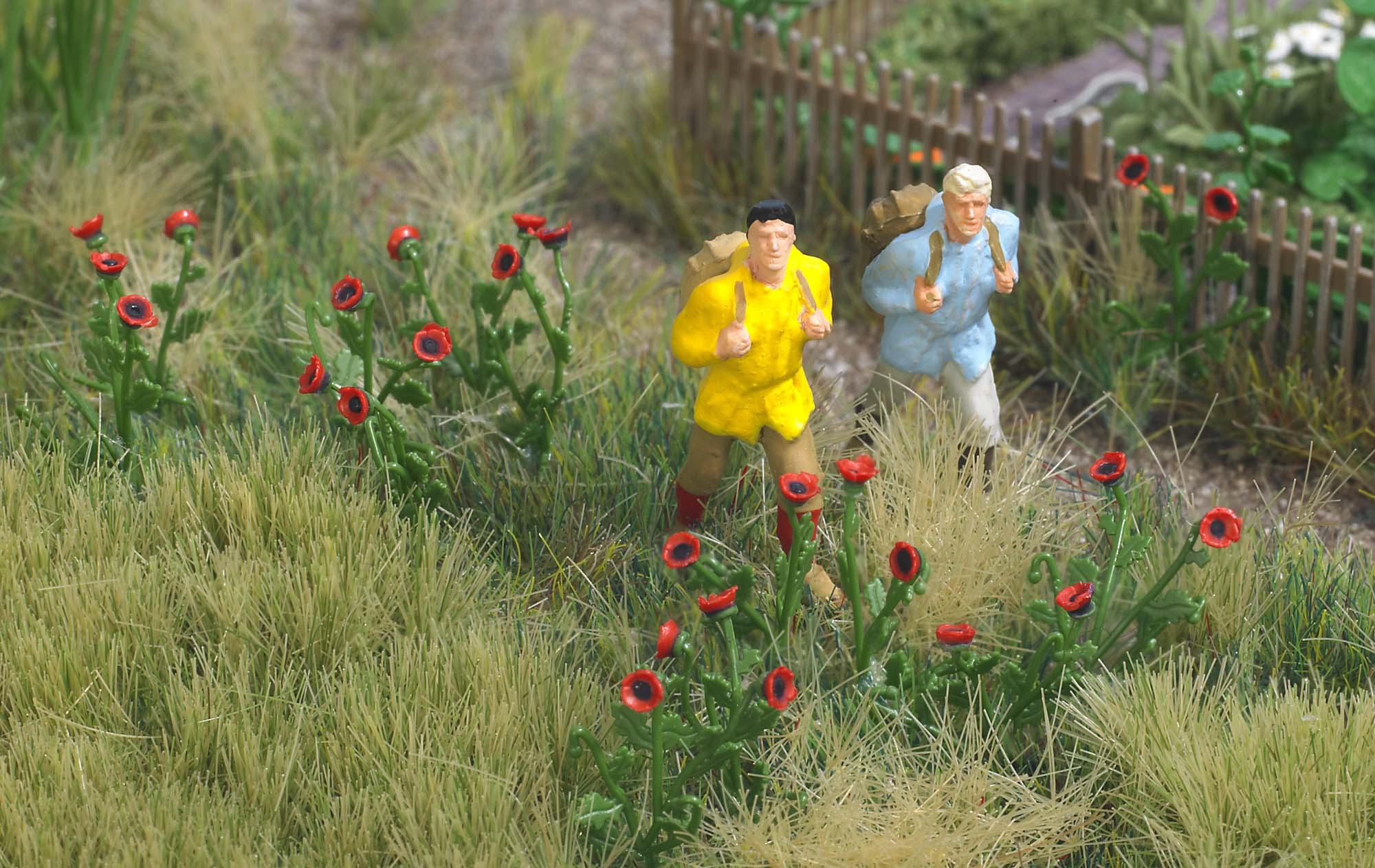 Die Packung enthält 80 Klatschmohnpflanzen im Maßstab 1:87 mit jeweils 2 Blüten (Bausatz). Realistische dreidimensionale Darstellung der Blätter und der Blüten in dem typischen roten Farbton. Lieferung inkl. Grundplatten.