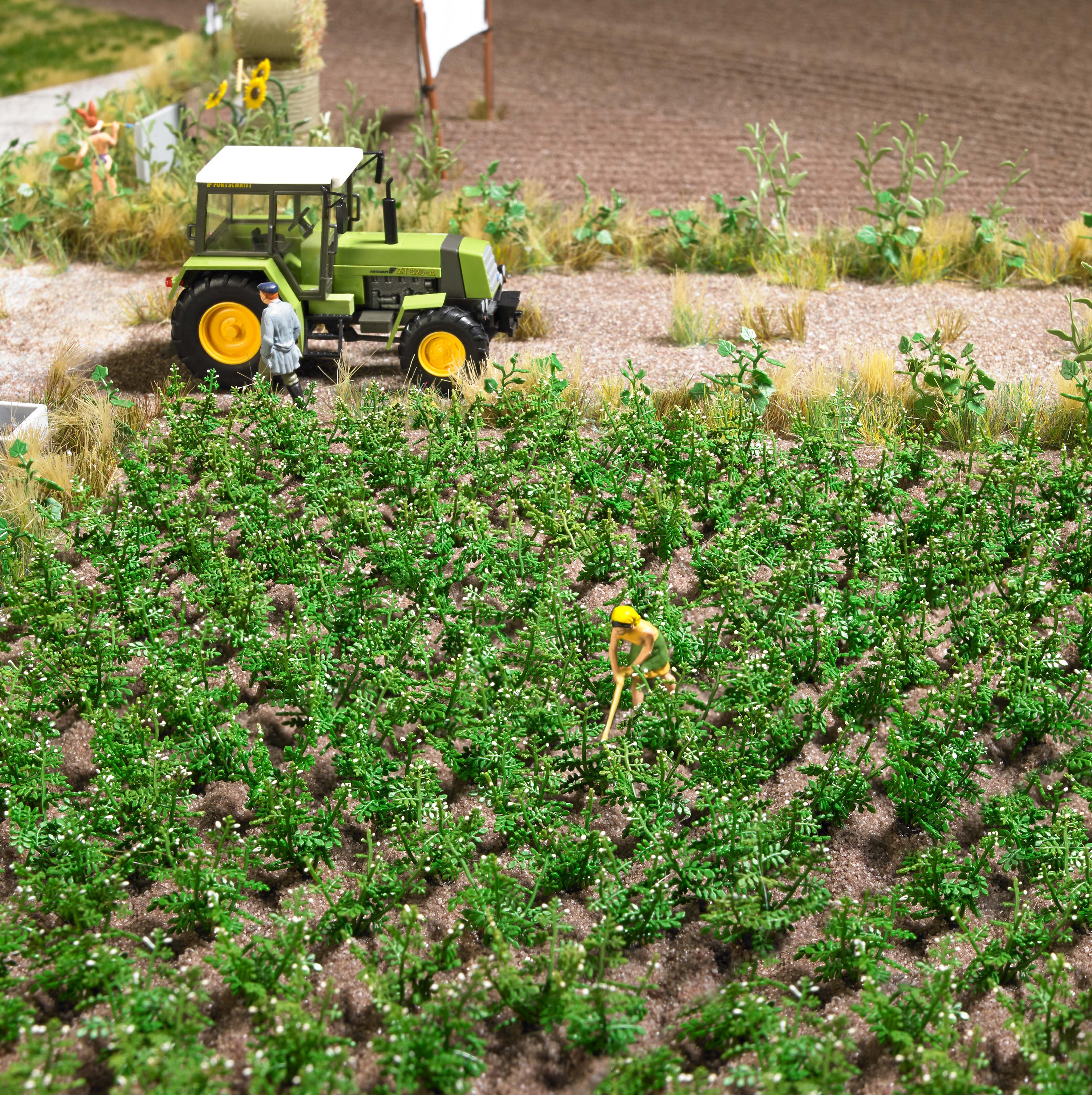 Busch hat die »Kartoffeln« in modellgerechte 3-D-Pflanzen umgesetzt, die aus einem natürlich matt glänzenden Kunststoffmaterial in realistischen Farbtönen hergestellt werden.