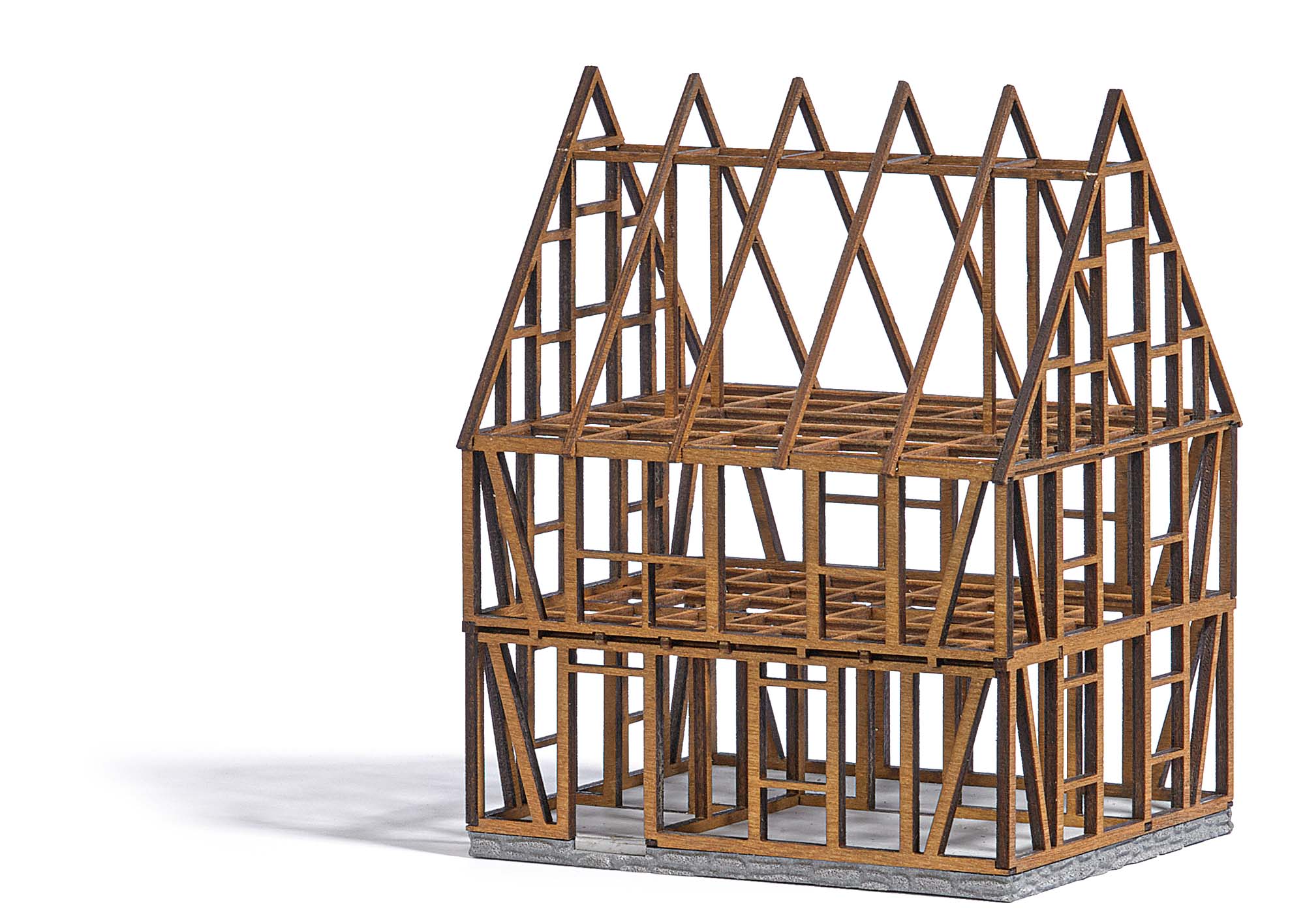 Holzkonstruktion mit Außen- und Innenwänden sowie den Zwischendecken aus echtem Holz. Alle Teile fertig koloriert. Bausatz. Perfekte Ergänzung: Fachwerkhaus im Bau 1371.