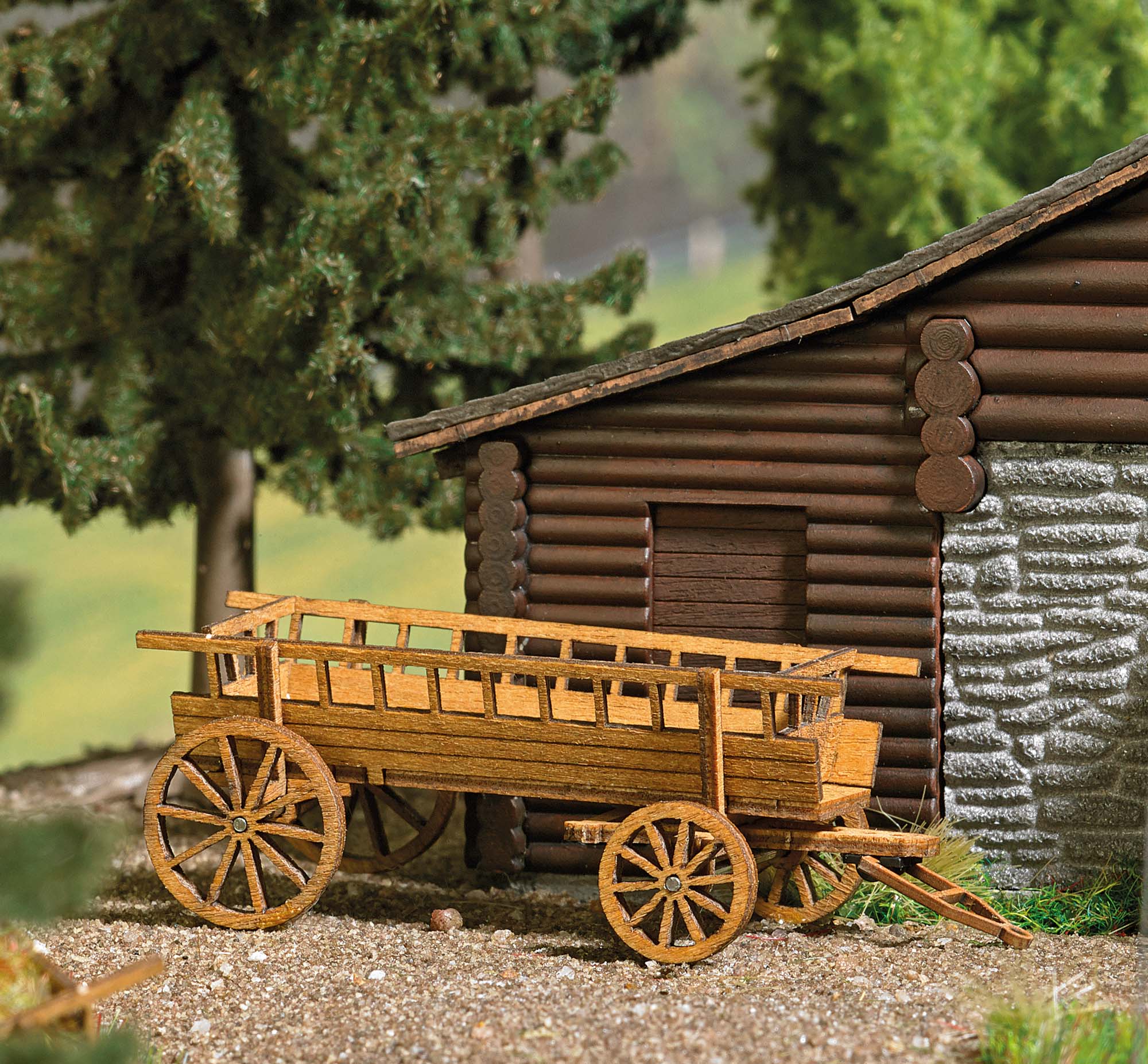 Bausatz für 2 Leiterwagen aus echtem Holz. Mit beweglichen Vorderachsen und Anhängerdeichseln.