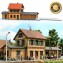 Das zweistöckige Modell gibt die Bauweise und die unterschiedlichen Oberflächen perfekt wieder. Viele Details wie die Holzverkleidung, Türen, Schiebetore, Klappläden und Fensterrahmen sind aus echtem Holz gefertigt. Dachrinnen und Fallrohre aus Kunststoff, realistische Nachbildung der Dächer aus unterschiedlichen Materialien. Für den Einbau einer Innenbeleuchtung (Beleuchtungssockel 4280 und Neon-LEDs 5987) vorbereitet. Bausatz.