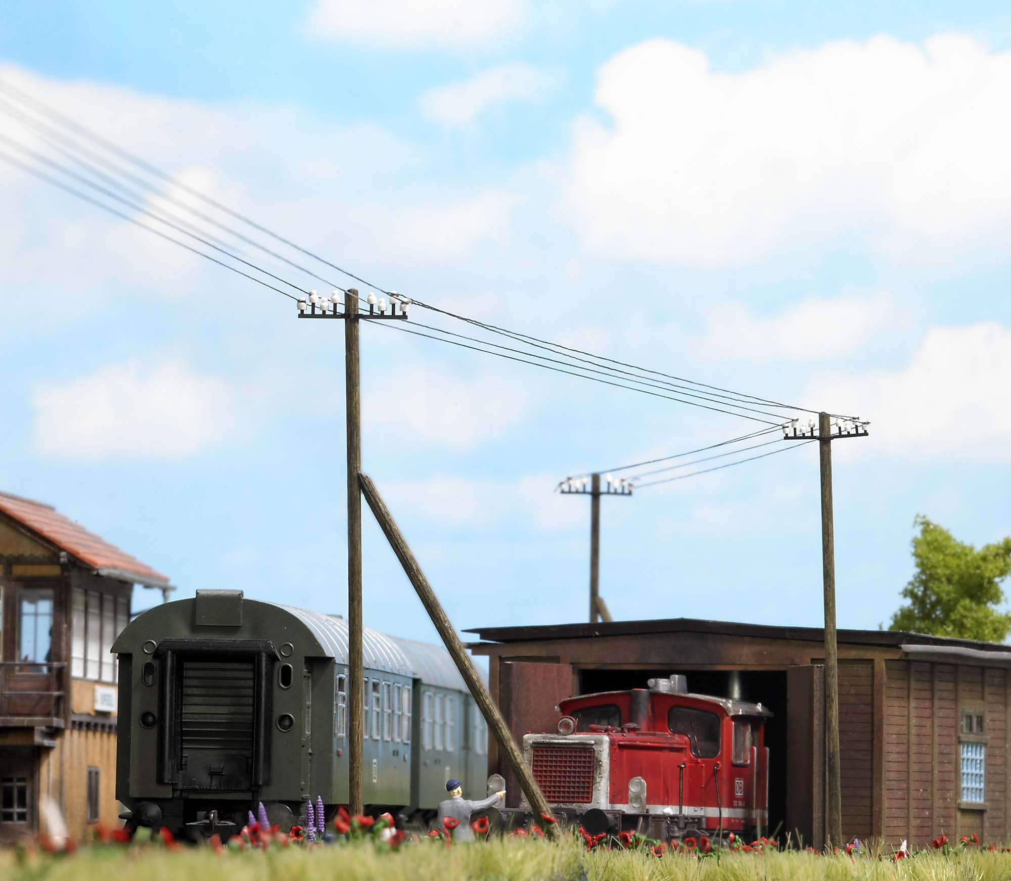 Preiswerter Probier-Bausatz für den optimalen Einstieg in die Montage von Gebäudemodellen im Busch-typischen »Materialmix« (kolorierte Echtholzfassade, stabile Unterkonstruktion, realistische Nachbildung der Dacheindeckung aus Teerpappe). Das kompakte und universell einsetzbare Gebäude ist einfach und schnell zusammenzubauen. Holzflügeltor zum Öffnen: 24 x 22 mm (Höhe).
