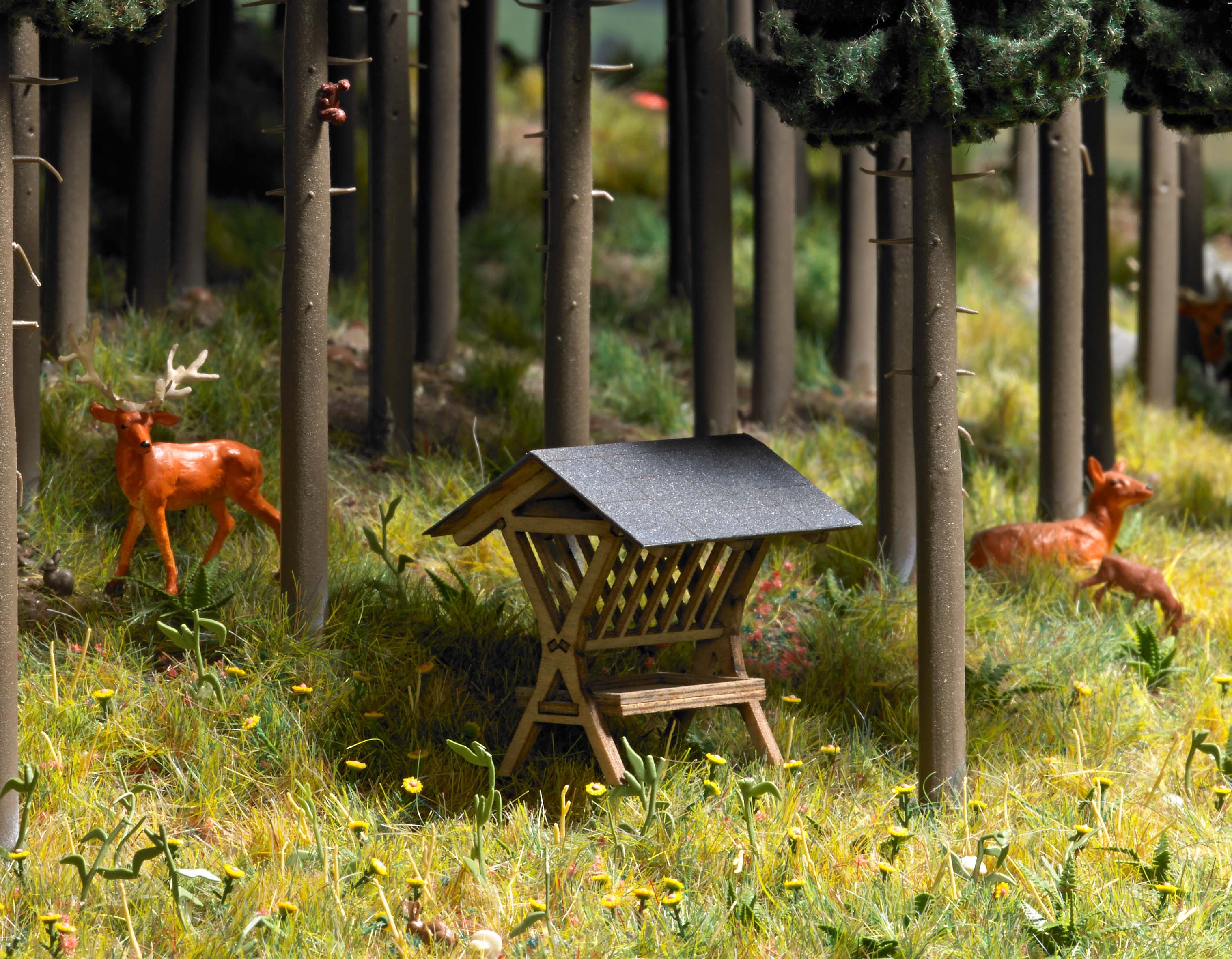 Bausatz für eine Futterkrippe für Wild und Nutzvieh aus echtem Holz, bereits fertig koloriert. Mit Dach als Wetterschutz.