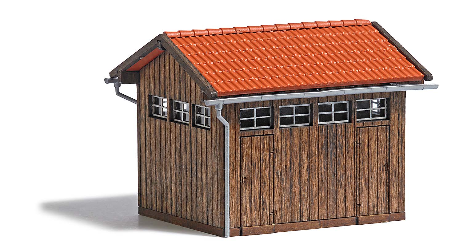 Typisches Toilettenhaus in echter Holzbauweise. Mit verglasten Oberlichtern an jeder Seite und separaten Eingängen für Damen und Herren. Ziegeldach mit filigranen Regenrinnen und Fallrohren. Universell einsetzbar auch für Bahnhöfe, Stadtparks usw. Bausatz.