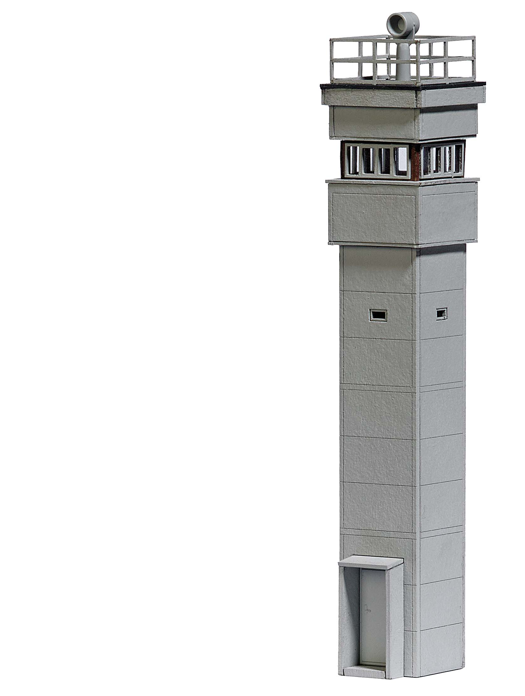 Bausatz für einen DDR Grenz-Wachturm des Typs BT-9. Diese Turmtype wurde seit den 1970er Jahren mit einem quadratischen Querschnitt von zwei mal zwei Metern aus Betonfertigteilen