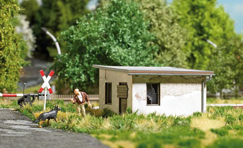 Der verwitterte Putz ist in super-realistischer 3D-Optik ausgeführt. Die matte Oberfläche hat einen modellgerecht rauen Charakter in Optik und Haptik. Mit Echt-Holz Elementen für Tür, Fenster und Bretterverschlag sowie eingeworfenen Scheiben.