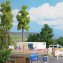 Provisorisches Impf- bzw. Testzentrum bestehend aus drei Containern. Mit Absperrgittern (Gesamtlänge über 180 mm), Plakathaltern in verschiedenen Größen und passenden Beschriftungen. Mit Sicherheitsfachkraft und Stehtisch zur Einlasskontrolle.