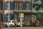 Taxisäule (Höhe 32 mm) nach westdeutschem Vorbild. Mit Sitzbänken und Papierkorb.