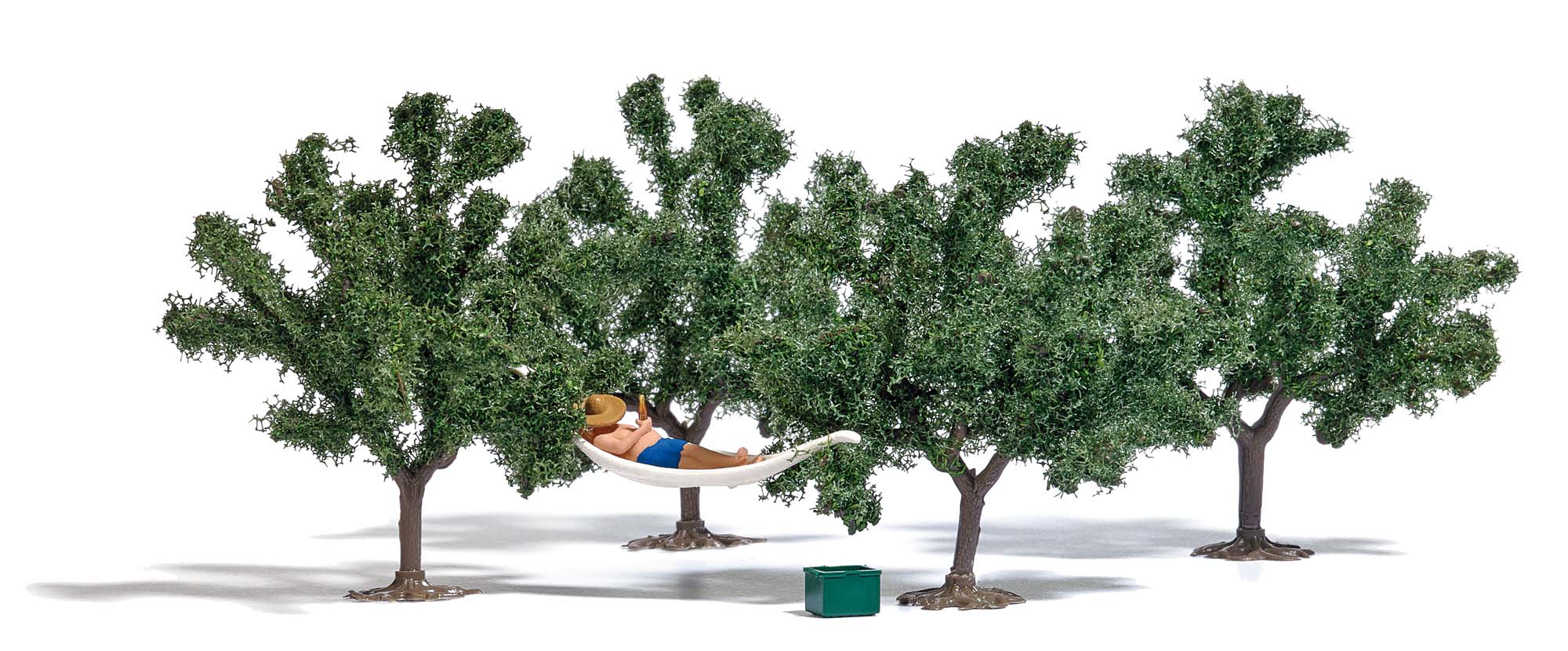 Mit 4 Obstbäumchen (jeweils 45 mm hoch) und Bierkasten mit Flaschen.