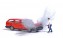 VW Passat Kombi mit brennendem Motor und realistischer Darstellung des Rauchs. Mit Fahrer und Feuerlöscher.