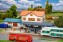 Überdachter Bahnsteig mit zahlreichem Ausschmückungszubehör, wie z. B. Kiosk, Sitzbänke, Infotafel, Abfallkörben und vieles mehr. Im Bausatzumfang ist eine Bahnsteigverlängerung mit Gleisabsenkung enthalten. Der Bahnsteig ist für alle Gleisarten geeignet und mit der »LED-Lichtleiste«, Art. 180654 beleuchtbar.