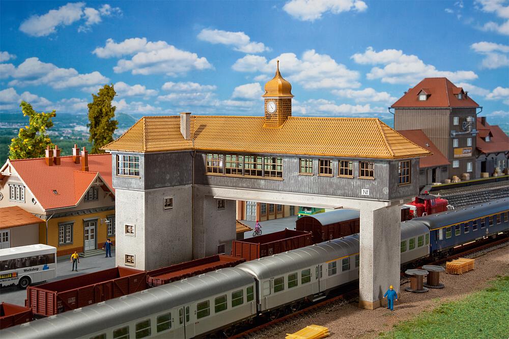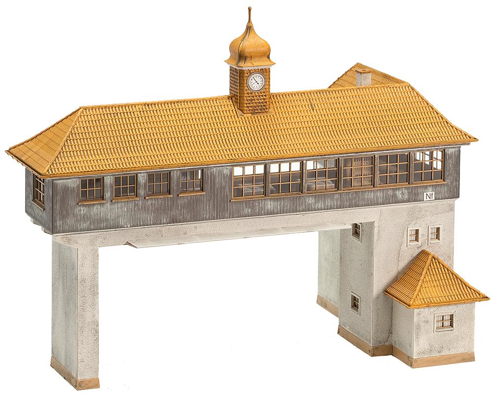 Reiterstellwerk Neustadt. 3 Gleise überspannend. Komplett eingerichteter Stellwerksraum. Das Original steht in Neustadt/Weinstraße. Oberleitungsbetrieb möglich. Maße: 280 x 168 x 210 mm