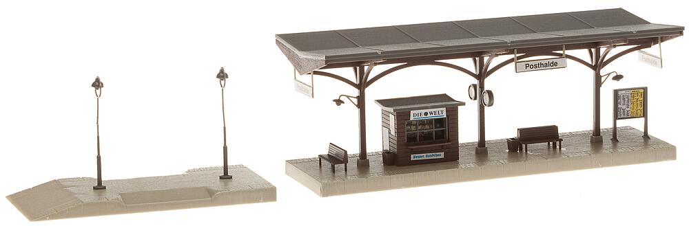 mit Ausschmückungsteilen. Bahnsteigverlängerung mit Gleisabsenkung. Dieser Bausatz enthält: 49 Einzelteile in 3 Farben, 1 Deko und 1 Bauanleitung.