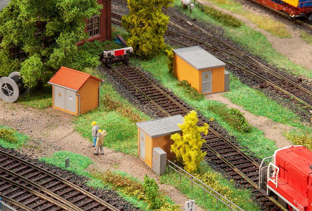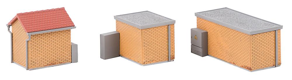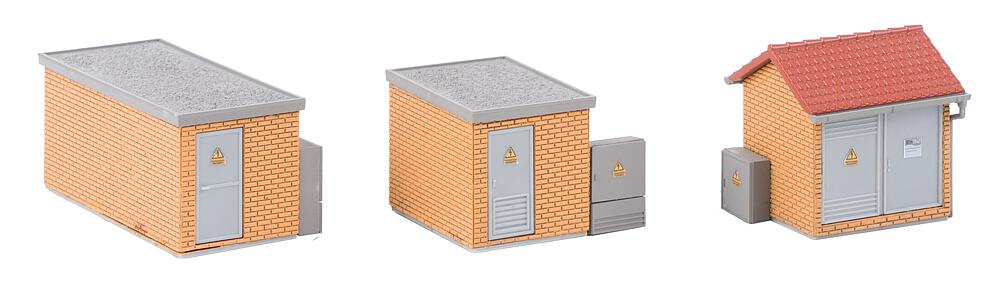 Perfekte Stromversorgung! Set bestehend aus drei kleinen, gemauerten Transformatorenstationen unterschiedlicher Baugröße.