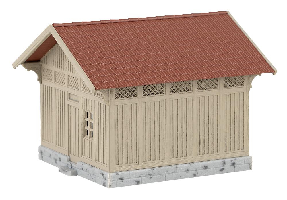 Ob im Zug oder auf dem Bahnhof, Hauptsache sauber sollte sie sein, die Toilette. Natürlich darf die Bahnhofstoilette auch auf keinem Bahnhof unserer H0-Modelleisenbahnanlagen fehlen. Rustikaler Nachbau des Originals in Lavin, mit aufwändig gelasertem Dach, Fenstern und realistischen Farbunterschieden im Holz.