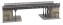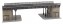 Zweigleisige Stadtbahnbrücke mit dekorativen Pfeilern, Kappen und Geländern aus Gusseisen und zwei Kiosken in den Widerlagern. Kopfsteinplatten beiliegend.