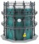 Industriedenkmal! Oberirdischer Behälter für die Speicherung von brennbaren Gasen, mit Stahlgerüst, drei begehbaren Umgängen und großer Messuhr an der Außenwand für die Anzeige des Füllstands.