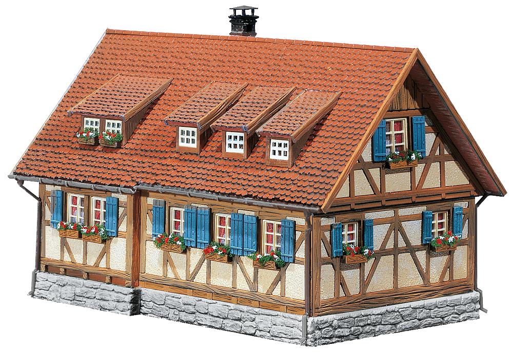 Mit Fachwerk und Ausschmückungsteilen. Dieser Bausatz enthält: 195 Einzelteile in 7 Farben, Fensterfolie, 1 Gardinenmaske und 1 Bauanleitung.