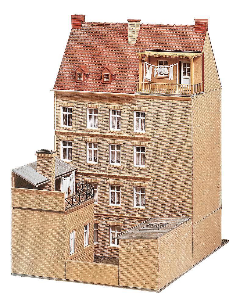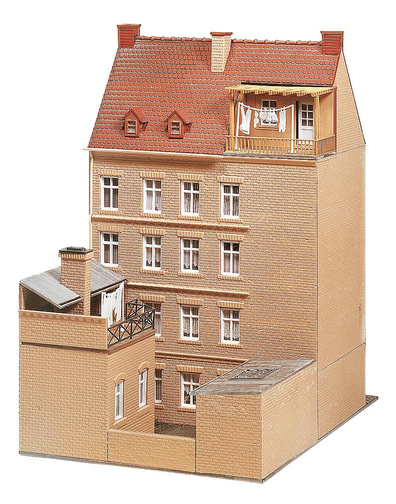 4-stöckiges Reihenstadthaus, in dessen Erdgeschoss sich ein Allianz-Büro und ein Tee- und Gewürzladen befindet. Dieser Bausatz enthält: 225 Einzelteile in 11 Farben, Fensterteile, 1 Gardinenmaske und 1 Bauanleitung
