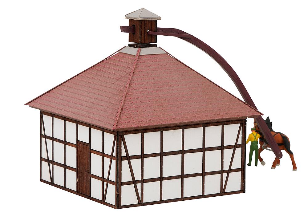 Bewegte Miniaturwelten. Lasercut-Funktionsmodell einer historischen Rossmühle um 1860 mit quadratischem