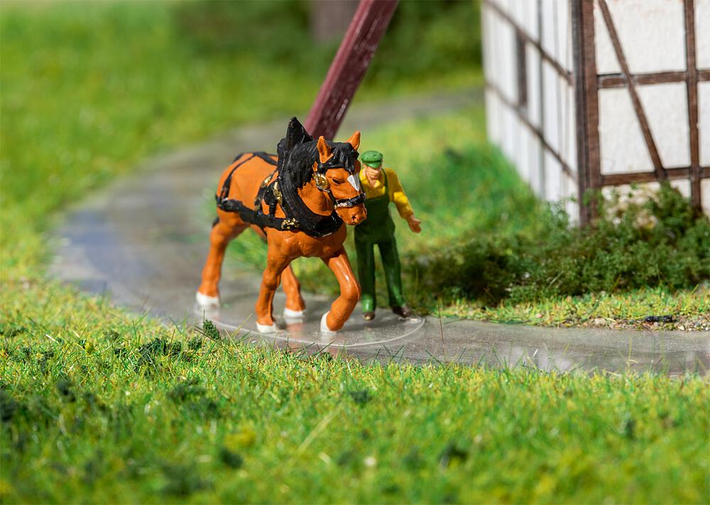 Nordrhein-Westfalen. Antriebsteile für die Motorisierung der Göpelanlage sowie Müller und Pferd als Miniaturfiguren