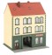 Dreigeschossiges Wohnhaus mit gemauerten Fenstereinfassungen, Solarmodulen auf dem Dach und einer Hinterhofdurchfahrt. Im Erdgeschoss befindet sich ein Modellbaugeschäft.