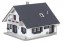Einstöckiges Wohnhaus mit hell verputzter Fassade, weißem Holzbalkon und Giebelfenstern im Dachgeschoss.