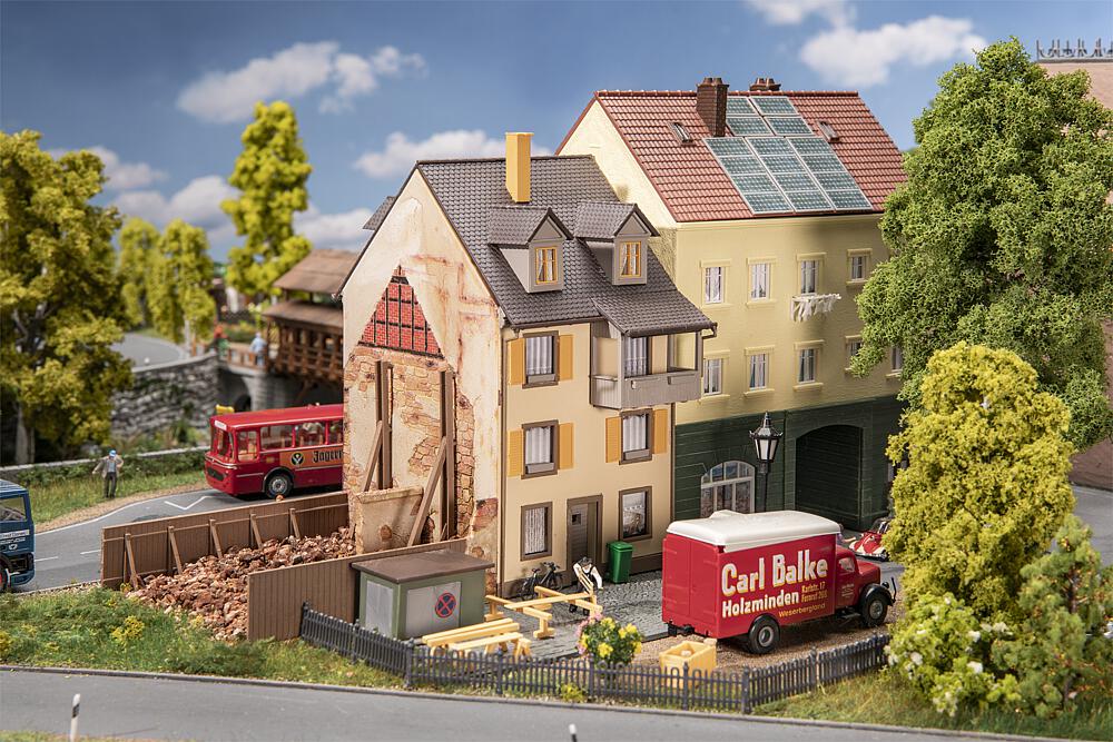 Stützen gesichert. Für die Sicherung der Baustelle liegt ein Bretterzaun bei.