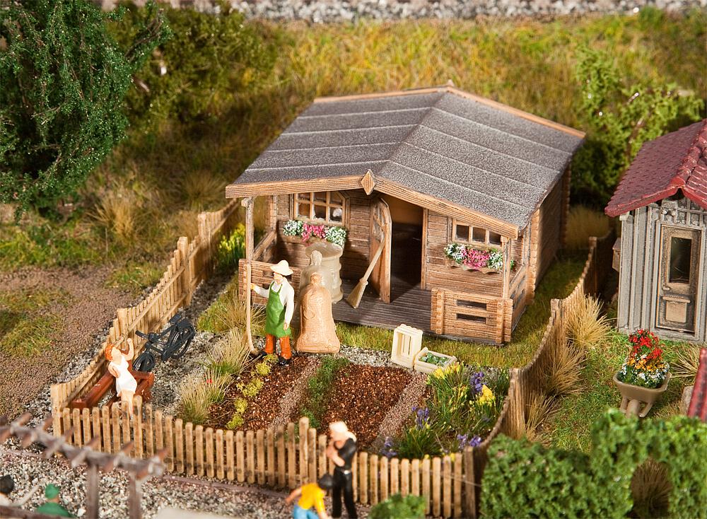 Schrebergarten mit großem Gartenhäuschen. Dieser Bausatz enthält: 68 Einzelteile in 4 Farben, Fensterfolie und 1 Bauanleitung.