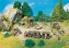 Mit Tischen und Bänken, Abfallkörben, Schaukeln, Wippen, Klettergerüst, Abenteuerhaus, Sandkasten, Rundlaufgerüst und einer Holzeisenbahn.