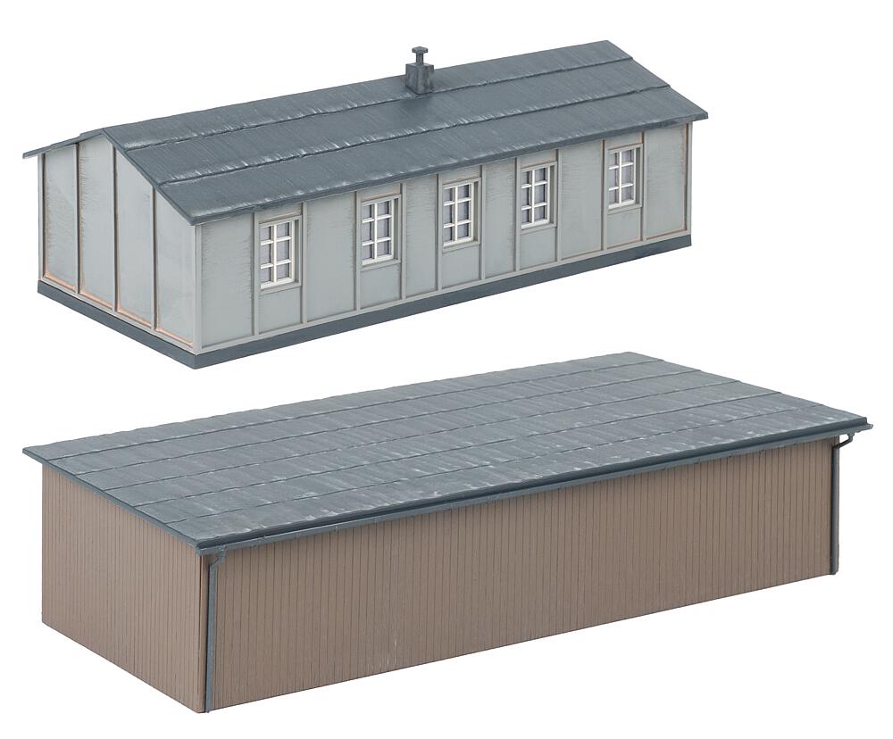 Epoche II - Baracke: 150 x 72 x 52 mm - Schuppen: 188 x 92 x 44 mm