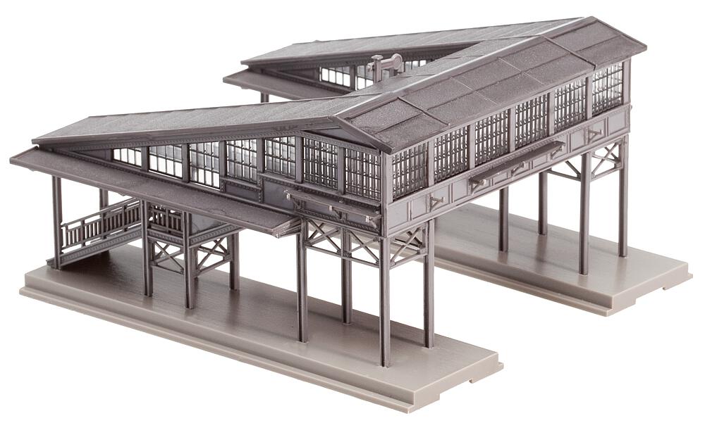 Bahnsteigbrücke Radolfzell.Gealtertes Modell der historischen Bahnsteigbrücke in Radolfzell am Bodensee. Aufgänge und Überbau der genieteten Stahlkonstruktion, die zwei Gleise überspannt, sind überdacht. Maße: 145 x 135 x 75 mm