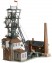 Zechen Gebäude. Die Förderanlage besteht aus der Schachthalle mit Fördergerüst und dem Fördermaschinenhaus. Die Schüttvorrichtung seitlich an der Schachthalle ermöglicht die Simulation einer Bahnverladung.