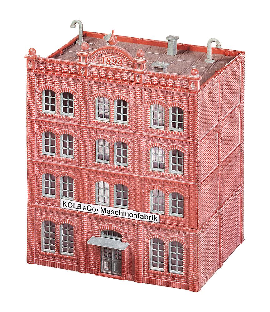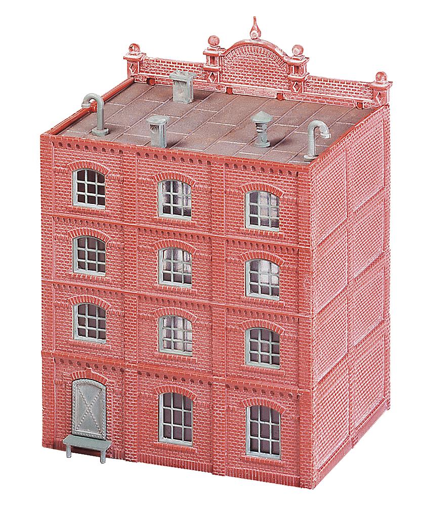 Fabrik-Hauptgebäude in fein detaillierter Ziegelstein-Bauweise. Durch die Verwendung mehrerer Bausätze kann das Gebäude sowohl in der Länge als auch in der Höhe vergrößert werden. Dieser Bausatz enthält: 68 Einzelteile in 3 Farben, Fensterteile und 1 Bauanleitung.
