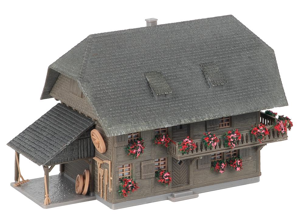 Ein charmantes, dunkles Schwarzwaldhaus, wie man es in den Höhenlagen des Schwarzwaldes findet. Dank seiner dezenten Größe fügt sich das Haus perfekt in Wiesen- und Waldlandschaften ein und eignet sich ideal für den Anlagenhintergrund. Inklusive Figur - ein kleines Stück Schwarzwälder Tradition für jede Modellwelt.
