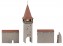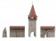 Altstadtturm mit quadratischem Grundriss, Durchfahrt und einer auskragenden Turmkrone aus Echtholz unter einem vierseitigen Spitzdach. Für die Gestaltung der Altstadtmauer liegen zwei Mauerelemente mit gedecktem Wehrgang und einem Treppenaufgang bei. Variable Anordnung möglich. Kombinierbar mit dem Altstadtmauer-Set, Art. 232170.