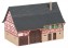 aufgedrucktem Fachwerkobergeschoss, Außentreppe und unterschiedlicher