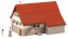 Charakteristisches Einhaus, das Wohn-, Stall- und Scheunenbereich unter einem Dach vereint. Im Erdgeschoss des zweistöckigen Hofes mit unterschiedlichen Dacheindeckungen befinden sich eine große Scheune, ein Schuppen und ein rückwärtiger Bretteranbau. Zur Vielseitigkeit des Modells tragen eine Außentreppe, ein Außenabort, eine Kellerfalle und Eternittafeln an einer Hauswand bei. Als Ausgestaltungselemente liegen ein Wegkreuz und eine Güllepumpe bei.