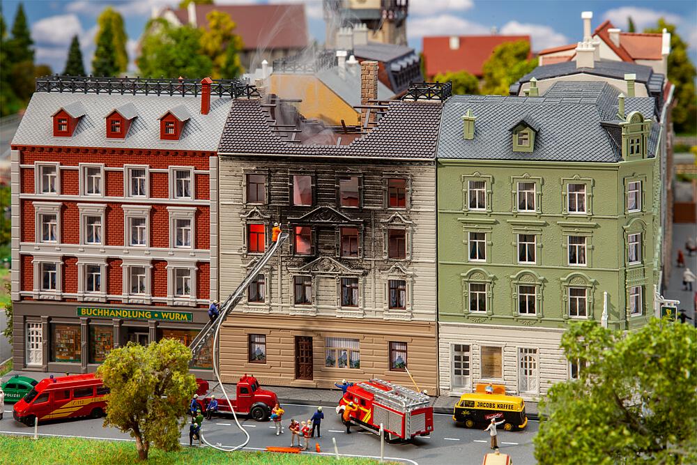 Für eine realistische Brandszene mit dichtem Qualm und loderndem Feuer kann das Modell mit dem »Rauchgenerator-Set«, Art. 180690 und den Minilichteffekten »Brandflackern«, Art. 180695 ausgestattet werden. (Art. 180690 und Art. 180695 nicht beiliegend.)