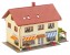 Für alle mit gutem Geschmack. Metzgerei und Bäckerei als eingerichtete Ladengeschäfte in einem zweistöckigen Wohnhaus. Durch die großen Schaufenster erblickt man die Warenauslage und ein Snack am Stehtisch unter der berankten Pergola lädt zum kurzen Zwischenstopp ein. Zum Zubehör gehören zudem Fahrräder und passende Fahrradständer. Dieser Bausatz enthält: Fensterfolie und 1 Bauanleitung. Maße: 114 x 83 x 76 mm.