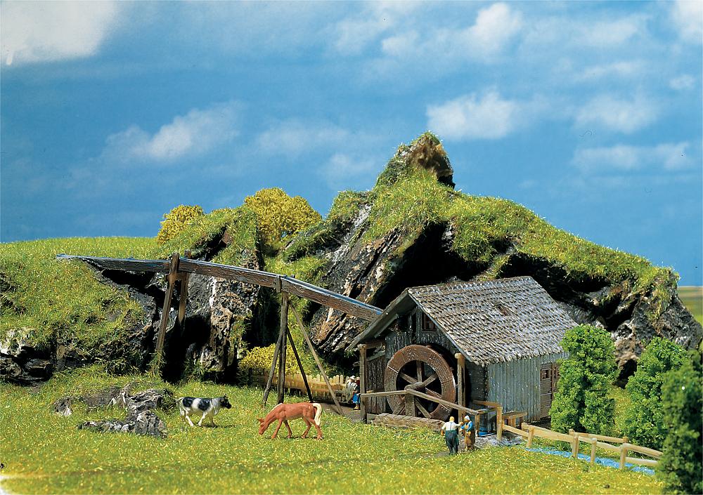 Mit originalgetreuem Wasserkanal für den oberschlächtigen Antrieb des Wasserrades.