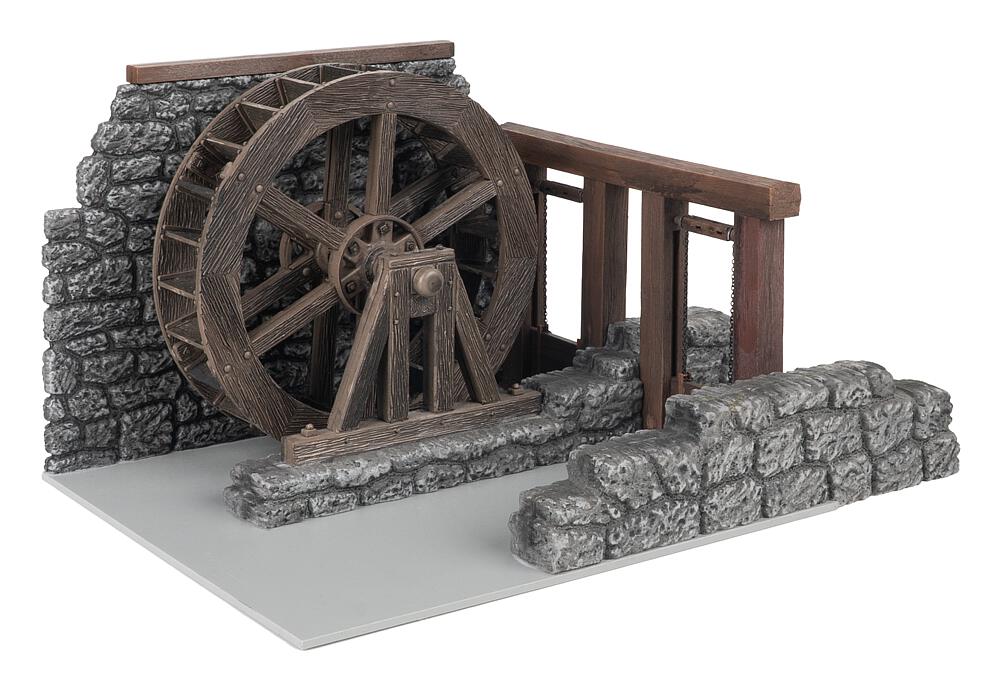 Die fein strukturierte Holzoptik und die naturgetreu gestalteten Steinmauern fügen sich perfekt in ländliche Umgebungen ein - ideal für Mühlen, Werkstätten oder historische Anlagen. Das Wasserrad kann mit dem Bastelmotor Art. 330090 (liegt nicht bei) angetrieben werden und wird so zum lebendigen Element Ihrer Modelllandschaft.
