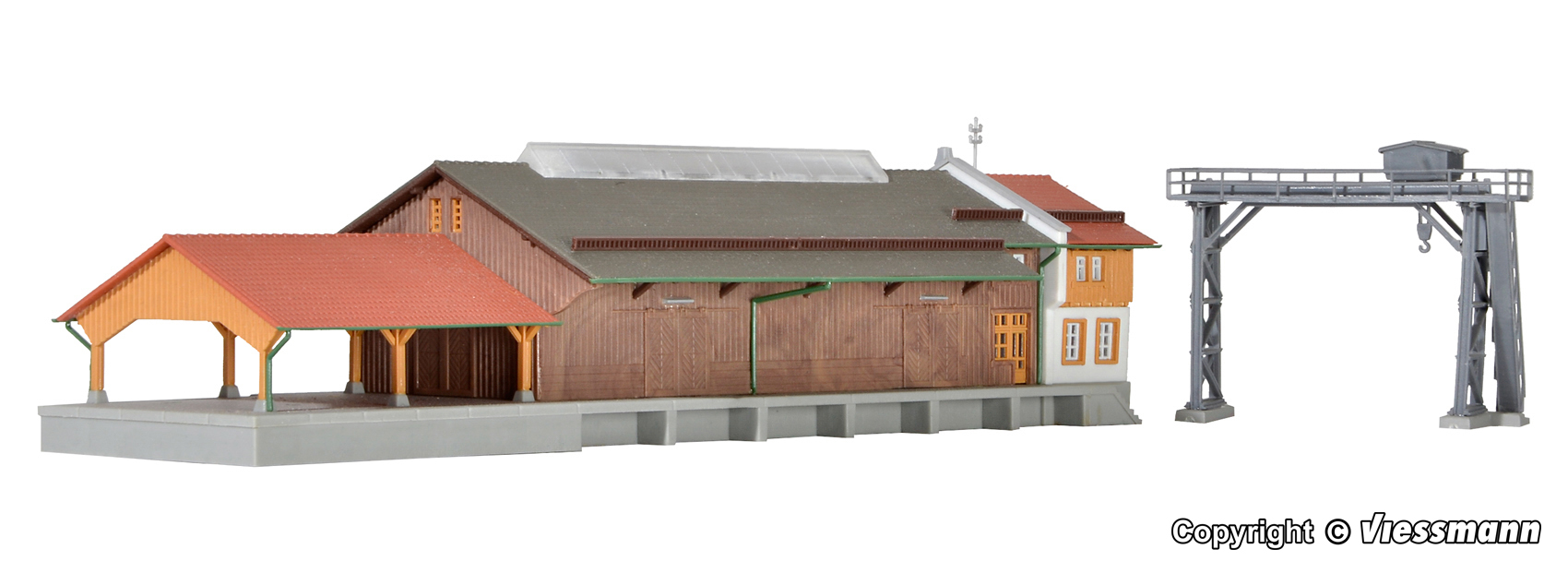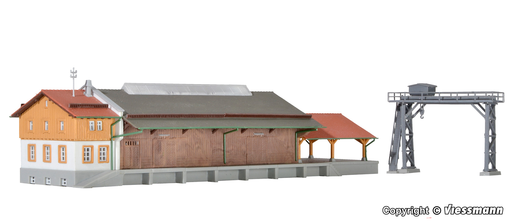 Bausatz. Durchfahrtshöhe: 3,8 cm. Durchfahrtsbreite: 4 cm. Maße: L 20 x B 7,5 x H 5,5 cm. Überladekran: L 6 x B 2,1 x H 5 cm. Schwierigkeitsgrad: 2 (Fortgeschrittene).