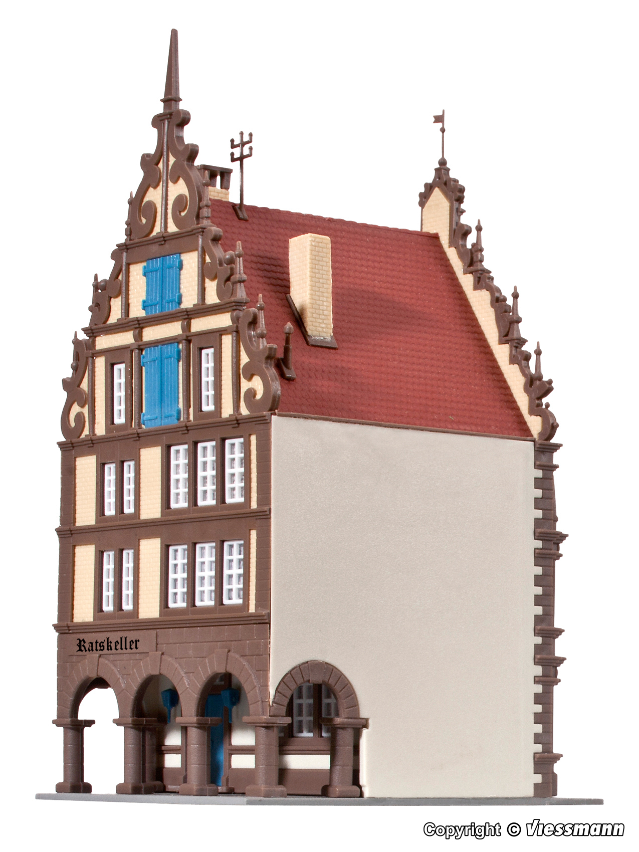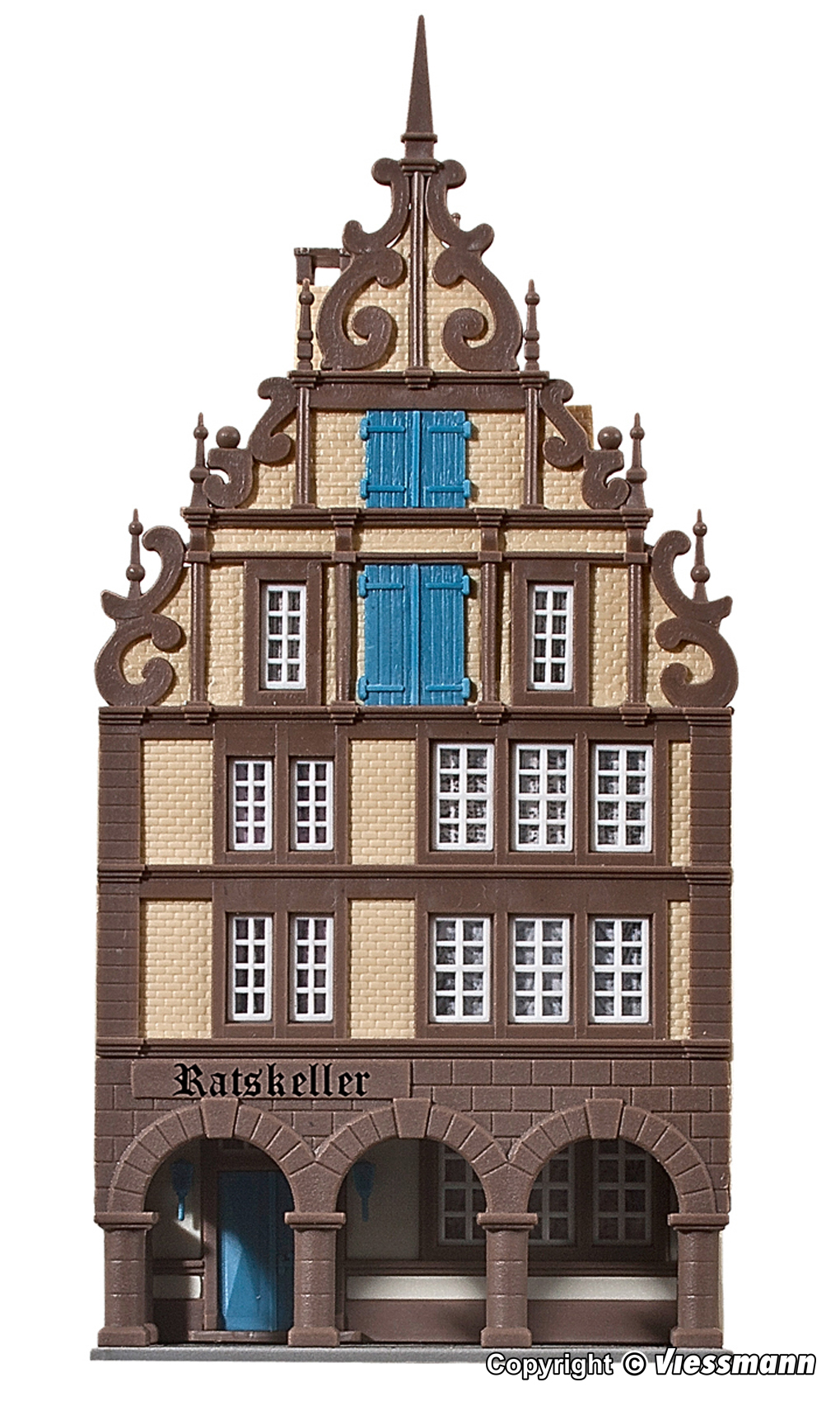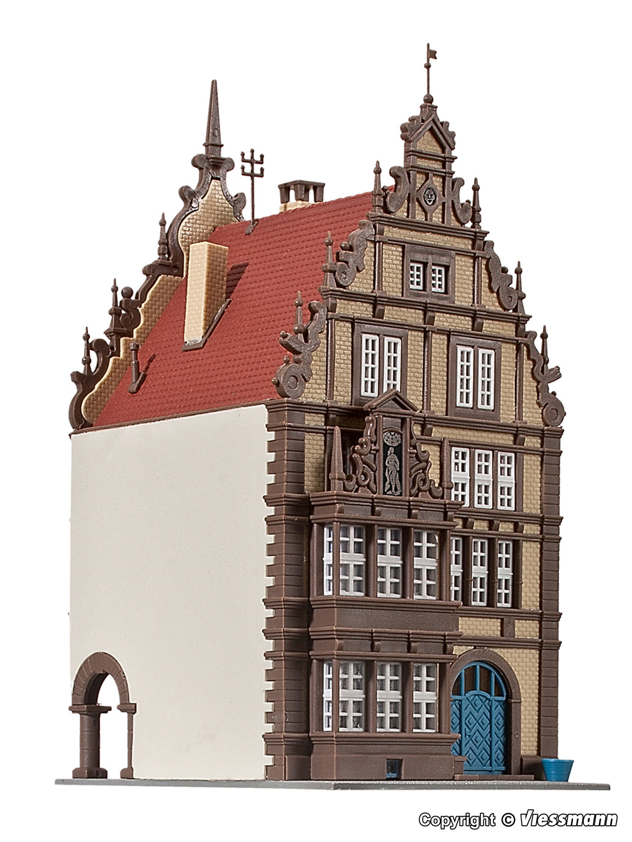 Bausatz. Dieses Gebäude ist im typischen Patrizierstil errichtet. Maße: L 6,5 x B 8 x H 12,5 cm. Schwierigkeitsgrad: 2 (Fortgeschrittene).