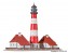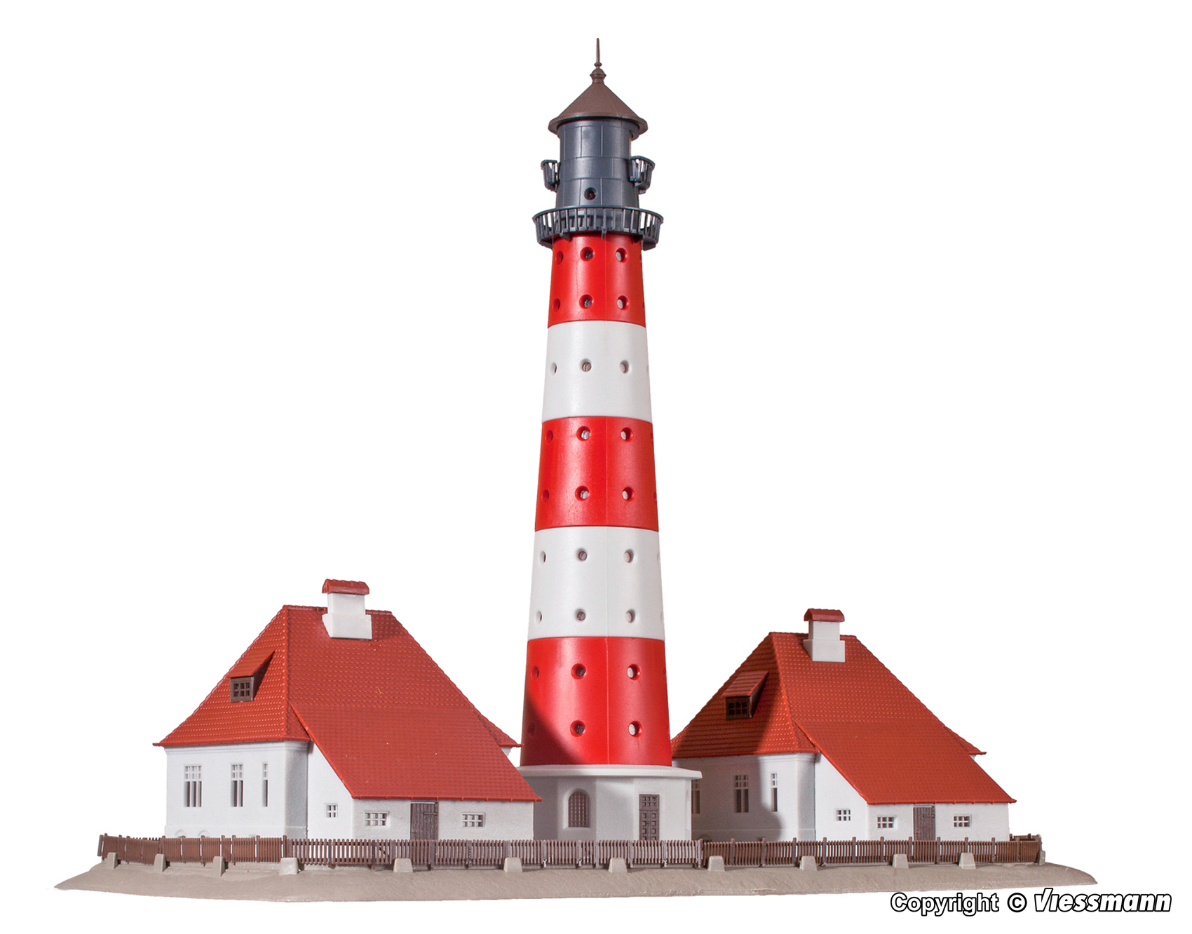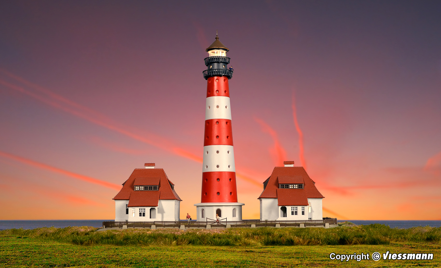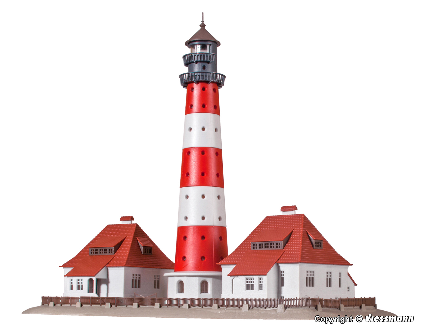 Funktionsbausatz. An der Nordseeküste steht das Original auf dem Westerheversand. Das Modell wurde dem Vorbild bis ins Detail nachempfunden, z. B. die doppelte Galerie mit dem äußeren Zugang zum Laternenraum an der Spitze des Turmes. Entsprechend dem Vorbild sind auch die Bullaugen als typische Merkmale in den 9 Etagen ausgeführt. Mit Stecksystem. Maße: L 27 x B 14,5 x H 23 cm. Schwierigkeitsgrad: 2 (Fortgeschrittene).
