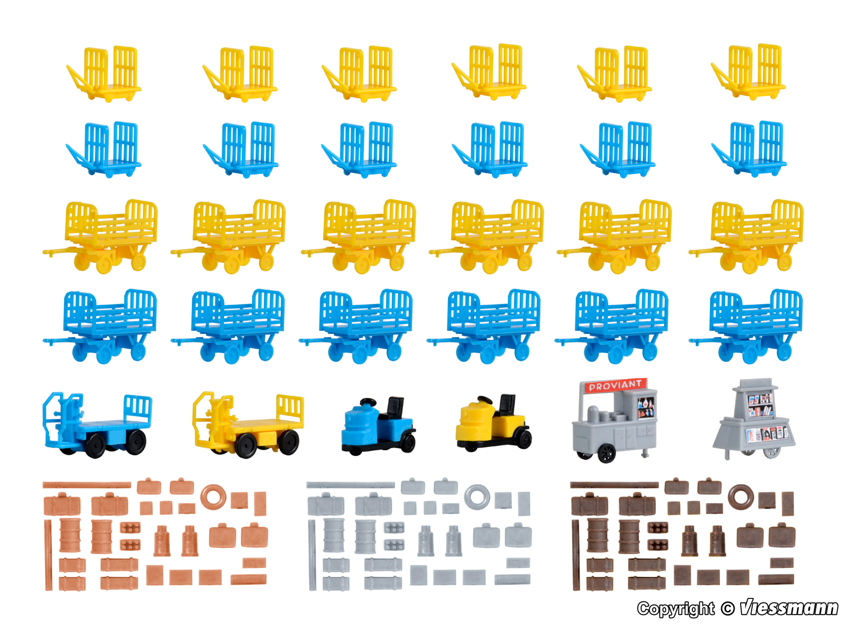 Bausatz. Verschiedene Gepäckkarren und Zugmaschinen. Schwierigkeitsgrad: 2 (Fortgeschrittene).