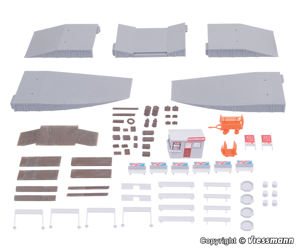 Bausatz. Mit diesen Ausschmückungselementen können Sie einen Bahnsteig realistisch gestalten. Schwierigkeitsgrad: 1 (Einsteiger)